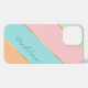 Moderne, gürmisch-rosa, türkisblau, pastellfarbene Minze grün und hellorange gestreifte Handybox. Mit Raum zum Anpassen mit einem Namen, Monogramm oder Initialen Ihrer Wahl. Schönes, modernes und cooles Cover für den Trend-geschickten und kunstliebenden angesagten Trendsetter, künstlerischer Motif-Liebhaber, der will, ihr Handy vor Staub und Schmutz, Abnutzung und Tränen zu schützen. Dieses Design ist erhältlich in Apple iPhone 6, 7, und 8 Plus, 10 oder X, XR, XS, 11, 12, 13 Mini, 14, 15 Plus, und Pro Max Handy Hüllen. Zeigen Sie Ihren Stil, sehen Sie in der Mode und fühlen Sie sich stilvoll mit einem einzigartigen Design auf einem mobilen Zubehör Ihrer Wahl.
