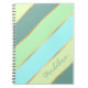 Vergnügungsbuch für Frauen oder Mädchen. Mit einem schönen, gürtnerisch aquamarinen, türkisblauen Aqua, hellen Minze, pastellgelben, grünen Streifen Muster. Mit Raum zum Anpassen mit Namen, Monogramm oder Initialen Ihrer Wahl. Verziertes, trendiges, modernes und skurriles Hipster Design für die elegante, künstlerische Mode oder künstlerische Mode-Diva, den angesagten Trendsetter oder den schlichten Retro gestreiften Kunstmotiv-Liebhaber.