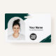 Easily personalize this Custom Horizontal Business Minimalist Employee abstract creative brush stroke Name Badge with Photo, Scan Qr Code or Scan Bar Code and business logo. A simple business design with round photo, in dark green and white colors, with arc photo shape, fully customizable in front and back sizes, sans-serif basic and modern fonts and a professional and clear look. Avaiable with lanyard, metal clip or with retractable. No minimum order.