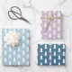 Modernes Minimalistisches Weihnachtsbaumpapier mit niedlicher klassischer geometrischer Weihnachtsbaumgrafie in winterlichen Wunderlandfarben von blass blau, leicht lila und blau, alles mit Elfenbein. Der perfekte Herbst hinterlässt Farben für Ihre Weihnachtsgeschenkverpackung. Es ist das perfekte Urlaubspapier als elegantes und elegantes Design. Dieser moderne, minimalistische Weihnachtsbaumprint ist trendig und stilvoll. Sie können ihn mit dem Familiennamen und dem Jahr mit dem Button "Anpassen" personalisieren.