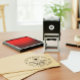 Your mail is about to get a major style upgrade. This modern, round self-inking stamp adds an effortlessly chic touch to every envelope. Featuring elegant, simple typography and your family name in a beautiful script, it's the perfect blend of rustic charm and modern calligraphy. No more messy handwriting, just a perfect, crisp impression every time. Elevate your stationery game with a signature look that's uniquely you. It’s a total must-have for a polished, personal vibe.