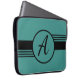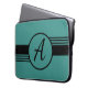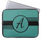 Laptop-Gehäuse mit blauem Hintergrund, schwarzen Streifen und einem benutzerdefinierten Monogramm