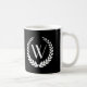Dieses Design zeichnet sich durch ein elegantes Monogramm aus, das in einem grünen Kranz eingekreist ist. Die hier angezeigte Hintergrundfarbe ist schwarz und kann an die Farbe Ihrer Wahl angepasst werden. Wählen Sie den Button "Anpassen" und geben Sie Ihre Wahl für ein schönes Geschenk für Zuhause oder Büro ein.