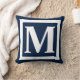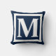 Custom Monogram Initial Navy Blue White Square Kissen