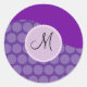 Custom Monogram Initial Purple Polka Dot Wave Runder Aufkleber