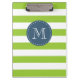 Custom Monogram Lime Green und Navy Bold Strips Klemmbrett