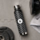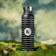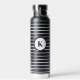 Diese isolierte Wasserflasche ist in schwarz mit weißen Streifen auch mit einer benutzerdefinierten Monogramm-Buchstabenprobe dargestellt. Ändern Sie den Beispielbrief auf Ihre oder kaufen, wie es ist.