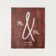 Boho Mr. und Mr. Gay Hochzeit Hintergrund personalisiert mit ihrem Nachnamen oder Namen und dem Veranstaltungsdatum oder festes Jahr. Design mit Terrakotta-Hintergrund mit elegantem, aber modernem Stil für eine Hochzeitsfeier, einen Empfang oder für eine Zeremonie Wanddekoration.