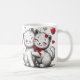 Imagine a white, delicate mug with a smooth and glossy surface. Around it, there's a charming design of cute kittens, all with adorable expressions, big, bright eyes. Some kittens are playfully chasing colorful yarn balls, while others are lying down, striking a "cute" pose with their little paws. The cats are drawn in soft shades of gray, white, and beige, with small pink details on their ears and noses, creating a subtle and endearing contrast. The background of the mug features tiny cat paw prints and hearts scattered around. This mug evokes a cozy, affectionate feeling, perfect for anyone who loves cats and wants a cute, warm touch for their coffee or tea moments.