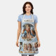 Custom Name 4 Photo Collage Elegant Blue Kitchen Schürze