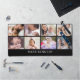 Modern photo collage desk mat personalized with name and 8 favorite pictures. Makes a unique personalized office gift.