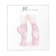 This personalized notepad is perfect for dancers and dance teachers. It showcases beautiful pink pointe shoes that are slightly transparent, along with your initials and name, making it an ideal choice for anyone who loves stylish stationery. You can customize the text at the top for a unique touch, making it great for journaling, note-taking, or as a thoughtful gift. Complementary items are also available. Order yours today!