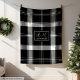 Custom Name Black White Buffalo Plaid Men's Gift Fleecedecke