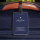 Custom Name Navy Blue Floral Abstract Script Name Gepäckanhänger