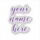 Custom Modern Chic Name Text Script Water Bottle clear Stickers featuring your personalized text in a cute and elegant calligraphy font. The sticker is in a cool dark purple, font style and colors are fully customizable.