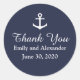 Der Aufkleber ist Mitternachtsblau. Ein weißer Bootanker liegt über dem weißen Text. Der Text lautet "Danke". Unten vielen Dank ist ein Ort, um Ihre Namen und Ihr Hochzeitstag hinzuzufügen.