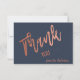Créez une carte à plat personnalisée et splendide, chic, minimaliste et simple merci pour votre prochain mariage. Cette carte à plat de remerciement est dotée d'un script de calligraphie spacieux et magnifique, écrit en feuille d'or rose faux avec un arrière - plan bleu marine. Vous pouvez facilement le customiser avec votre propre texte et le customiser à votre goût. Remarque : l'illustration "Thank -You-" ne peut pas être modifiée. Remarque supplémentaire : L'impression de feuille d'or rose est un effet de feuille d'or rose faux. Ce n'est PAS la feuille d'or rose d'estampillage à chaud.