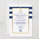 Elégante carte d'invitation marine bleu et blanc rayé. L'ancrage or avec cadre en feuille d'or ajoute cette touche de classe supplémentaire. Ajoutez votre événement / entreprise LOGO modèles personnalisés afin que vous puissiez facilement do-it-yourself et ajouter/modifier avec vos propres informations. Idéal pour tous les événements nautiques à thème.