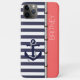 Zeitgenössischer Schiffsanker auf einem klassischen blau-weiß Streifen Muster. Set mit nautischen Seil, sodass Raum zu personalisieren oder anpassen mit einem Namen, Initialen, oder Monogramm auf einem korallenroten Hintergrund. Schönes, modernes und cooles Cover für den Trend-geschickten und kunstliebenden angesagten Trendsetter, künstlerischer Motif-Liebhaber, der will, ihr Handy vor Staub und Schmutz, Abnutzung und Tränen zu schützen. Dieses Design ist erhältlich in Apple iPhone 6, 7, und 8 Plus, 10 oder X, XR, XS, 11, 12, 13 Mini, 14, 15 Plus, und Pro Max Handy Hüllen. Zeigen Sie Ihren Stil, sehen Sie in der Mode und fühlen Sie sich stilvoll mit einem einzigartigen Design auf einem mobilen Zubehör Ihrer Wahl.