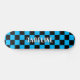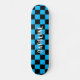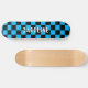 Skateboard mit lustigen funky schwarz und kühn leuchtend blau gefärbten Rennfahnen Karo Muster Design. Stilvolles Original und cooles Cover für den Trend-versierten und kunstliebenden angesagten Trendsetter, trendiger Look-Style-Motif-Liebhaber.