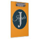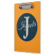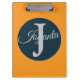 Modern custom orange Light ocean blue Monogram clipboard.