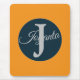 Modern custom orange Light ocean blue Monogram mouse pad.