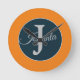 Custom orange greay blue Monogram Elegant Runde Wanduhr