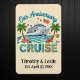 Tropical cruise anniversary design featuring a ship, palm trees, and floral accents. Personalized anniversary stateroom door marker with names and date for a romantic celebration. Please note: Not all ship's doors are magnetic. We cannot guarantee your door will be magnetic. Please check with your travel agent, the cruise line, or via forums.
