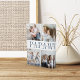 Mit diesem vier Foto-Collage vertikalen Acrylblock entsteht ein süßes Geschenk für einen geliebten Großvater. "Papaw" erscheint in der Mitte in sanft blauer Schrift, mit der eigenen Nachricht und den Namen der Enkel überlagert.