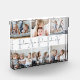 Mit diesem sechs Foto Collage Acrylblock kreieren Sie ein süßes Geschenk für einen geliebten Großvater. "Pappy" erscheint in der Mitte in weich grauem Schriftsatz, mit Ihrer benutzerdefinierten Nachricht und Enkelkinder-Namen überlagert.