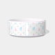Ein süßes Muster mit rosa und blauen Welpen mit minzgrünen Sternen auf weißem Hintergrund. Passen Sie diese Schüssel mit dem Namen Ihres Haustieres an!