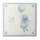 Cute ceramic tile featuring a pencil drawing of a little girl in a frilly dress floating under a balloon in the style of Delft ceramic tiles. The text is fully personalizable. Perfect as a door sign for a new baby nursery or even as an original birth announcement.