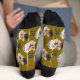 custom pet photo socks feature your own pet photo in a cute offset pattern with white paw prints on a black background, and are the perfect custom socks to feature your dog, cat, or anything with paws