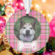 Custom Pet Photo Ornament Pink & Green Plaid Bone