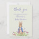Personalisieren Sie diesen Peter das Kaninchen Design und fügen Sie einen Namen und Anlass. "Danke, dass du mit uns gefeiert hast (Name hinzufügen) Babydusche" Text