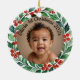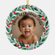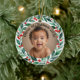custom photo christmas holly ceramic ornament