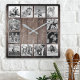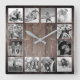 Custom Photo Collage Rustic Farmhouse Script Quadratische Wanduhr
