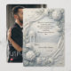 Convey refined gratitude after your formal garden celebration with this romantic aesthetic, featuring off-white tones, botanical details, and a portrait.The layout establishes a strong visual hierarchy centered around a full-bleed, focal-point couple's portrait rendered in muted charcoal tones. This central image is enclosed by a simulated architectural border designed to mimic classic sculptural elements, including draped leafy vines, dense floral clusters, and a domed pavilion structure utilizing soft silver blue-grey and off-white shading for depth. A sharp, hand-drawn red heart provides a distinct, vibrant pop of contrasting color, while the text layout balances elegant formal calligraphy with traditional cursive handwriting for an upscale, legible composition.This is a flat printed image with a faux sculpted plaster effect, not actual raised material.