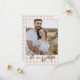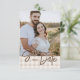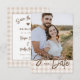 Personalizable save the date card with a photo template featuring a beige gingham pattern and lovely brown script font. The front displays 'Save the Date' partially over the photo with a gingham border along the bottom. The back provides space for the couple’s names, wedding date and venue. Perfect for rustic, country or farmhouse-style weddings.