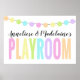 Custom Pom Pom Pastel Rainbow Playroom Poster