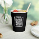 QR Code Moderne Black & White Espresso Coffee Shop Promotion Paper Cups Durch die Verwendung eines QR-Codes auf den Promotion-Papier Tassen, können Kunden schnell und einfach mehr Informationen über das Café, wie seine Menüeinträge, Stunden des Betriebs und Position. So kann sich das Café mit den Kunden austauschen und sein Geschäft effektiver fördern. #qrcode #qrcodes #qrcodeforbusiness