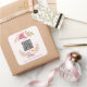 Auf diesen quadratischen Aufklebern mit Blumenrahmen sind Ihr einzigartiger QR-Code und eine personalisierte Textzeile dargestellt. Ideal für Hochzeitsgeschenke und andere Veranstaltungen!