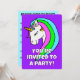 Dieses lustige Party-Design zeichnet sich durch eine helle Hintergrundfarbe und ein fröhliches Einhorn aus. Personalisieren Sie mit Ihrem eigenen Namen, Alter und Informationen! Designed in beautiful Washington Staat, USA, von einem unabhängigen Künstler.