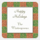 Eine elegante Weihnachts- oder Urlaubspackung oder ein Geschenkaufkleber mit Schrift und Handschrift und Rot- und Grünplätzen mit elegantem Vintagen Lilie-Muster in Golden, restauriert aus antiken Kacheln.