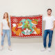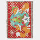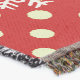 Maßgeschneiderte Red Fox Weihnachtsdecke, farbenfroh, lustig, niedlich und fröhlich! Zwei rote Füchse mit Winterhut und Schals, ein Weihnachtsbaum mit roten Kugeln, und weiße Schneeflocken auf einem Hintergrund von Aquablau mit einer Grenze von rot mit weißen Polka Punkte. Es gibt auch ein Sterngestalterbanner, das Sie mit Ihrem Monogramm Initial personalisieren können!