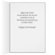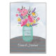 Wünschen Sie ein besonderes Paar Segnungen zu ihrem Jubiläum. Diese hübsche Kaugummi-Vase hält einen gemischten Strauß von Aquarellfarben-Blume auf einem gestreiften Tisch. Hübsche religiöse Karte, um glücklichen Jahrestag zu sagen. Passen Sie diese Karte für jede Beziehung an.