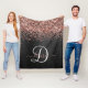 Custom Rose Gold Glitzer Black Sparkone Monogram Fleecedecke
