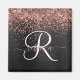 Custom Rose Gold Glitzer Black Sparkone Monogram Magnet