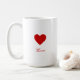 Custom modern minimalist red heart "Love" coffee cup - with your personalized chic design. Keep it simple or make your own unique changes to the heart or background color, add typography with names, dates, a quote or a special message.