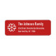 Maßgeschneiderte, personalisierte, festliche Rot und Weiß, Schneeflocke, Weihnachtsfeiertagssaison kehren Adresse Label. Geben Sie einfach den Familiennamen / Braut & Bräutigam / Ehefrau & Ehemann Namen, und Adresse, um sich anzupassen.